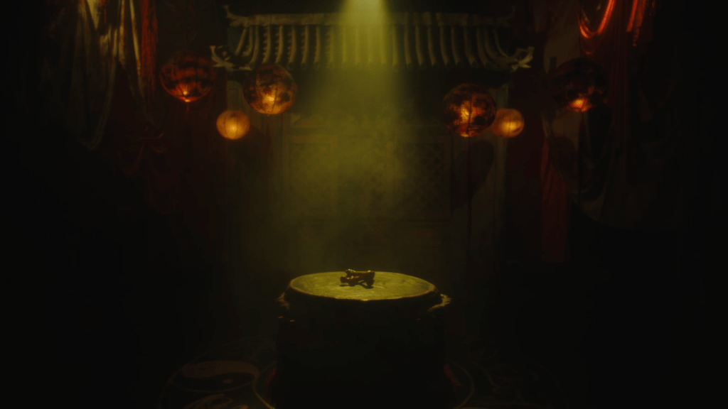 The big Chinese drum featured in the score is indirectly created as a character on its own. During the creation of the score, the drum sound was specially treated to sound much deeper and more resonant (longer decay) than the instrument would perform acoustically to highlight its mysterious darkness as seen in the film.